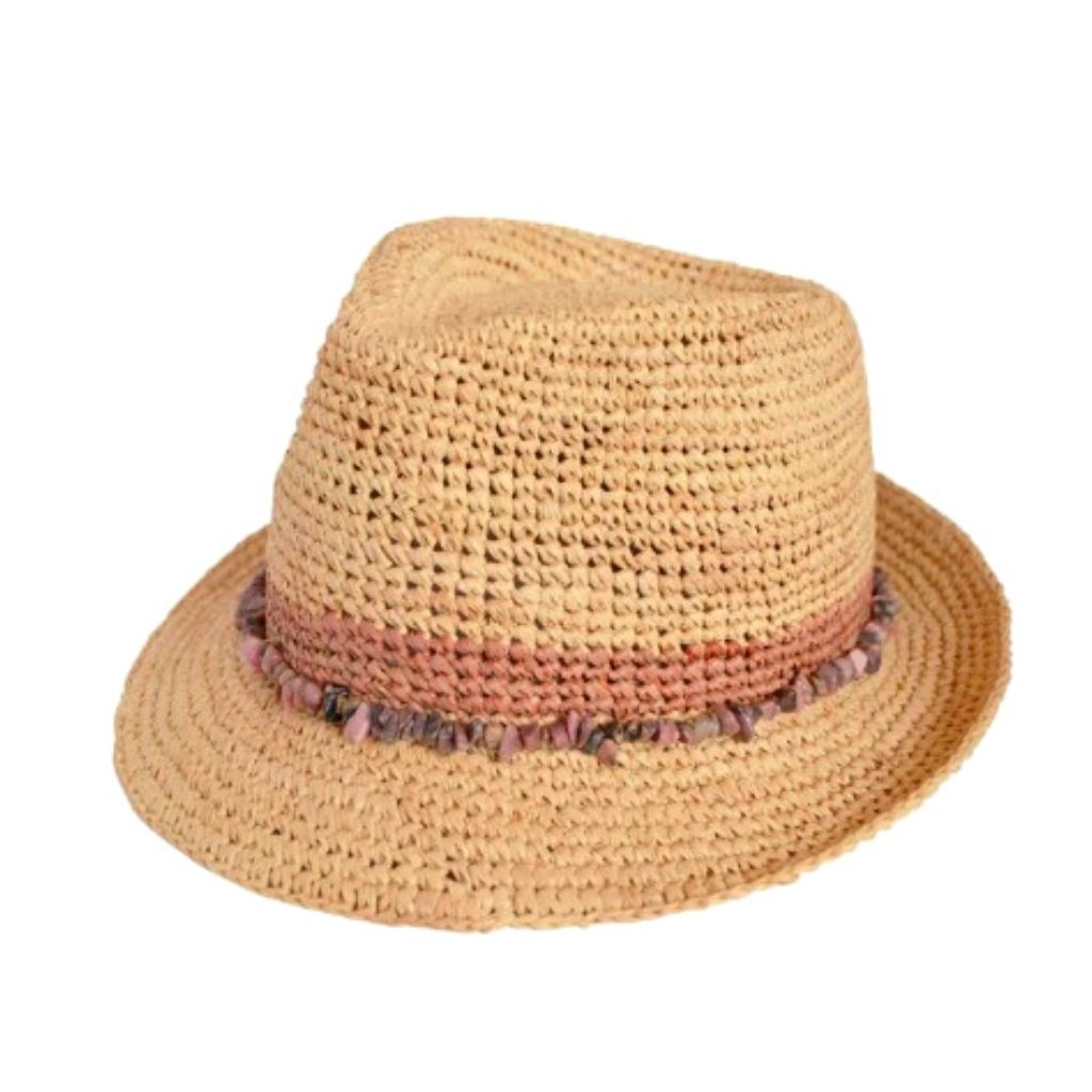 Regular price N$786.95 NADSale price N$786.95 NAD Regular priceUnit price perSale Sold outEmthunzini Roxy Rose. The Roxy is a hand crocheted Raffia straw Trilby with a short brim, and a colour coordinated band of genuine stone beads around...