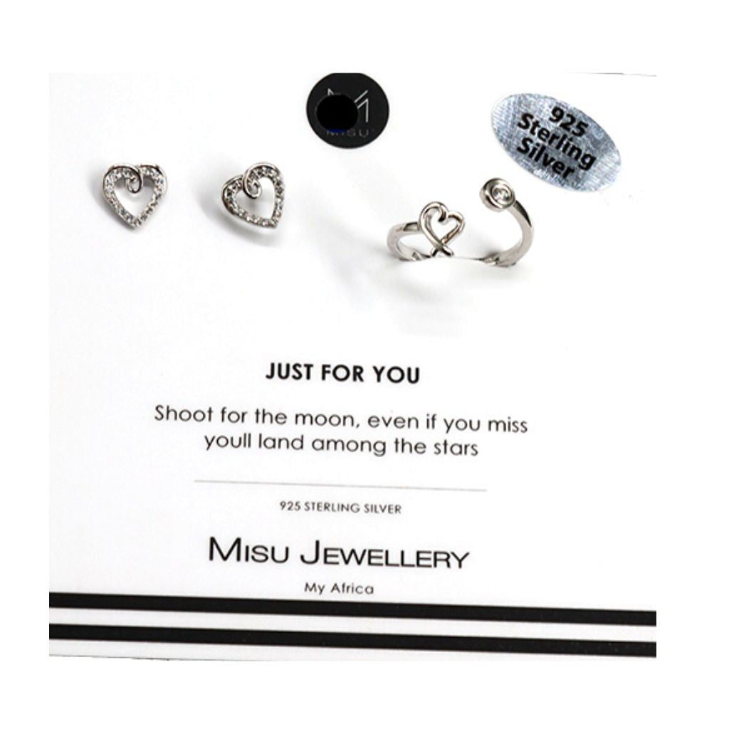 Regular price N$472.95 NADSale price N$472.95 NAD Regular priceUnit price perSale Sold outMISU Jewellery Heart earrings and ring set – Timeless jewellery loved and treasured forever. Misu jewellery Creates beautiful, simple silver, Opel & rose gold treasures that connect...
