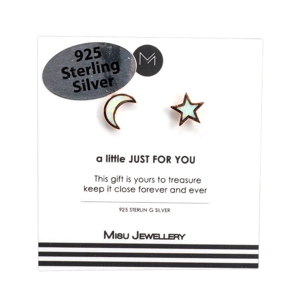 Misu Opal moon and star studs set