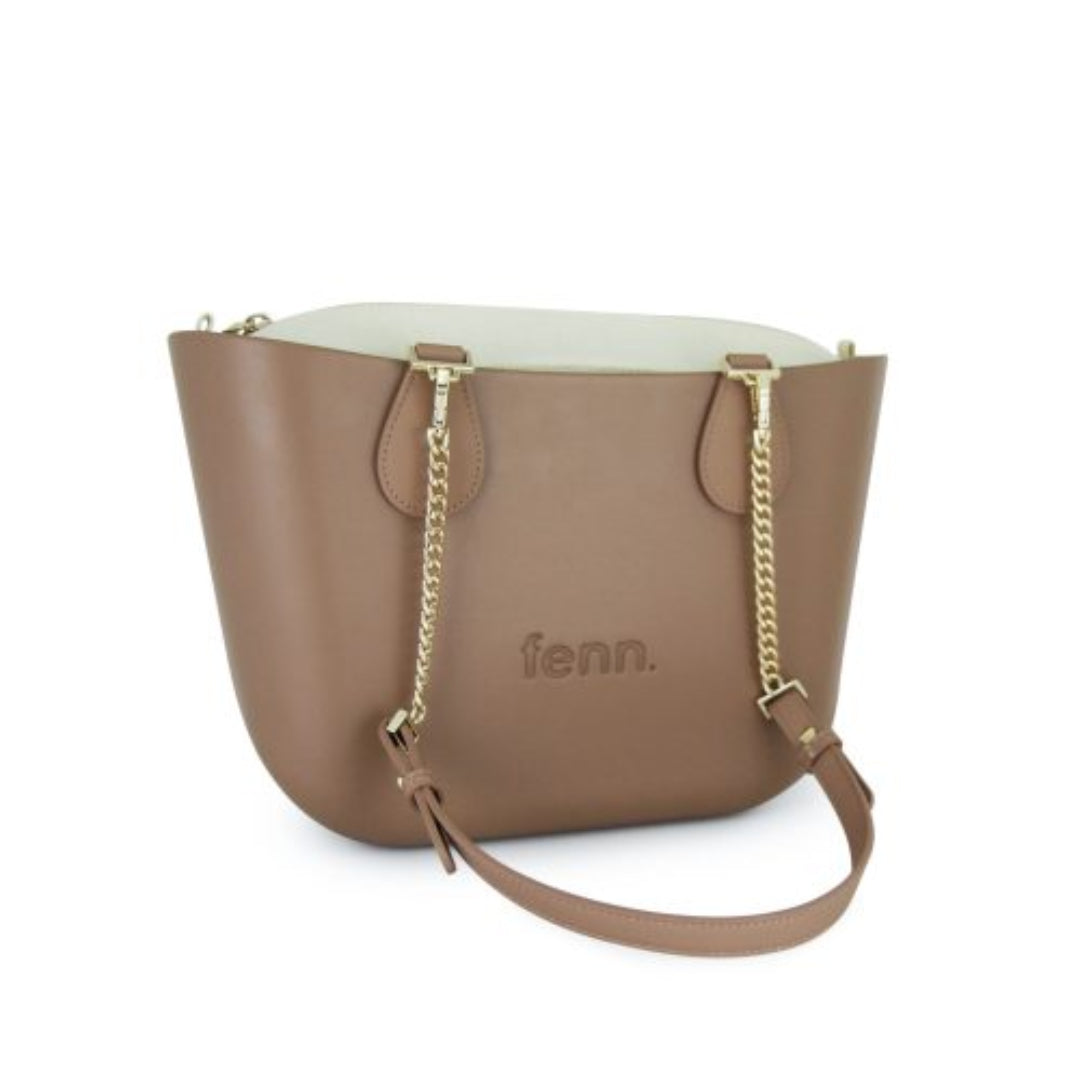 Fenn Petite Tote in Cappuccino with Beige Inner and Gold Chain
