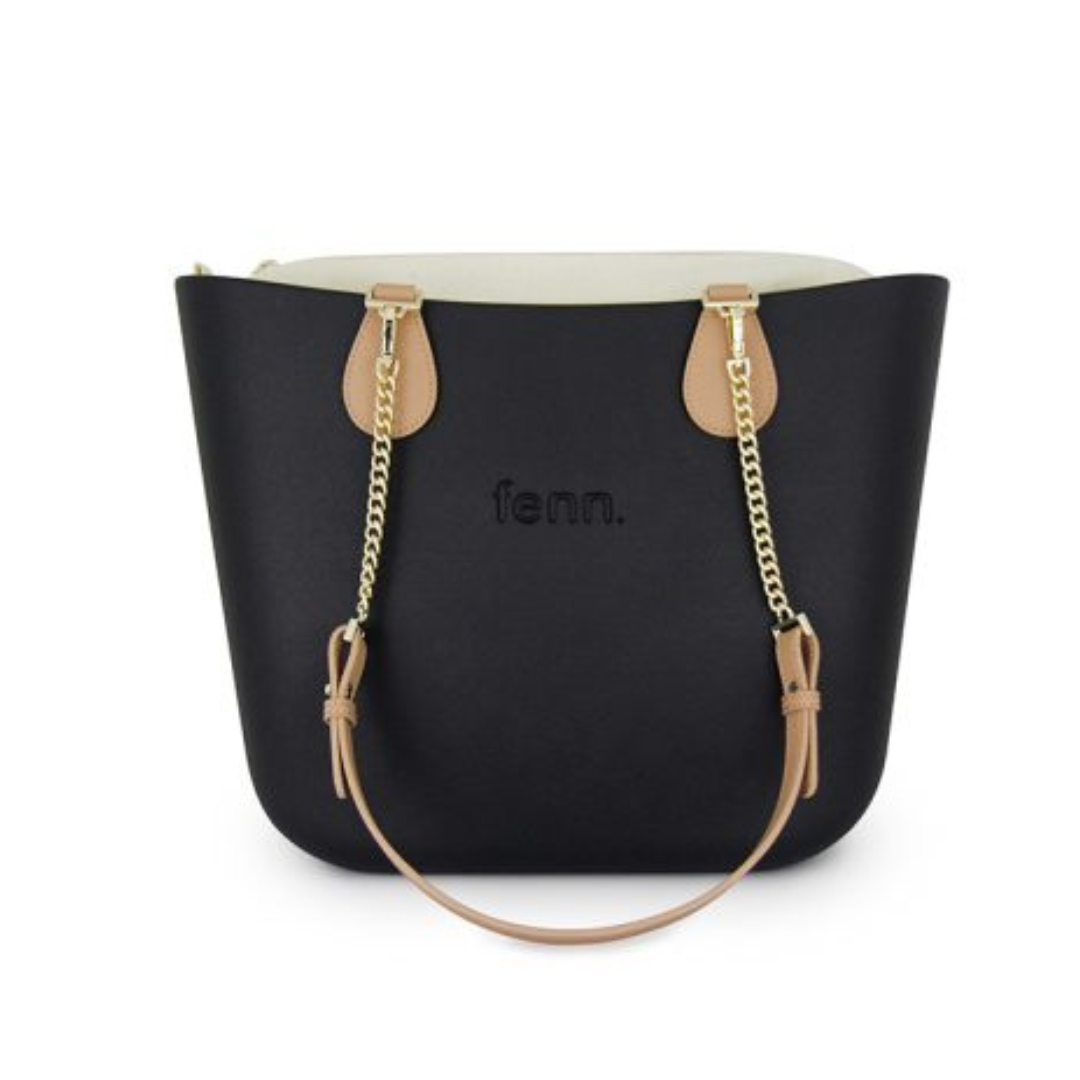 Fenn Original Collection - Black | Beige Inner | Gold Zip / Light Tan & Gold Chain